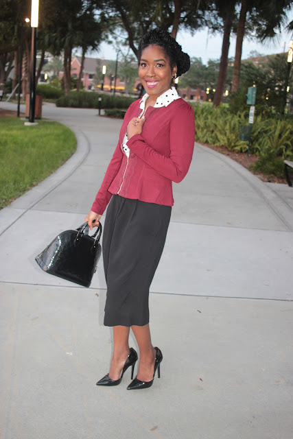 Cullottes Just Fab here| Portofino blouse Express here| heels Mavvis Just Fab here| Crochet Peplum Blazer Just Fab here|.