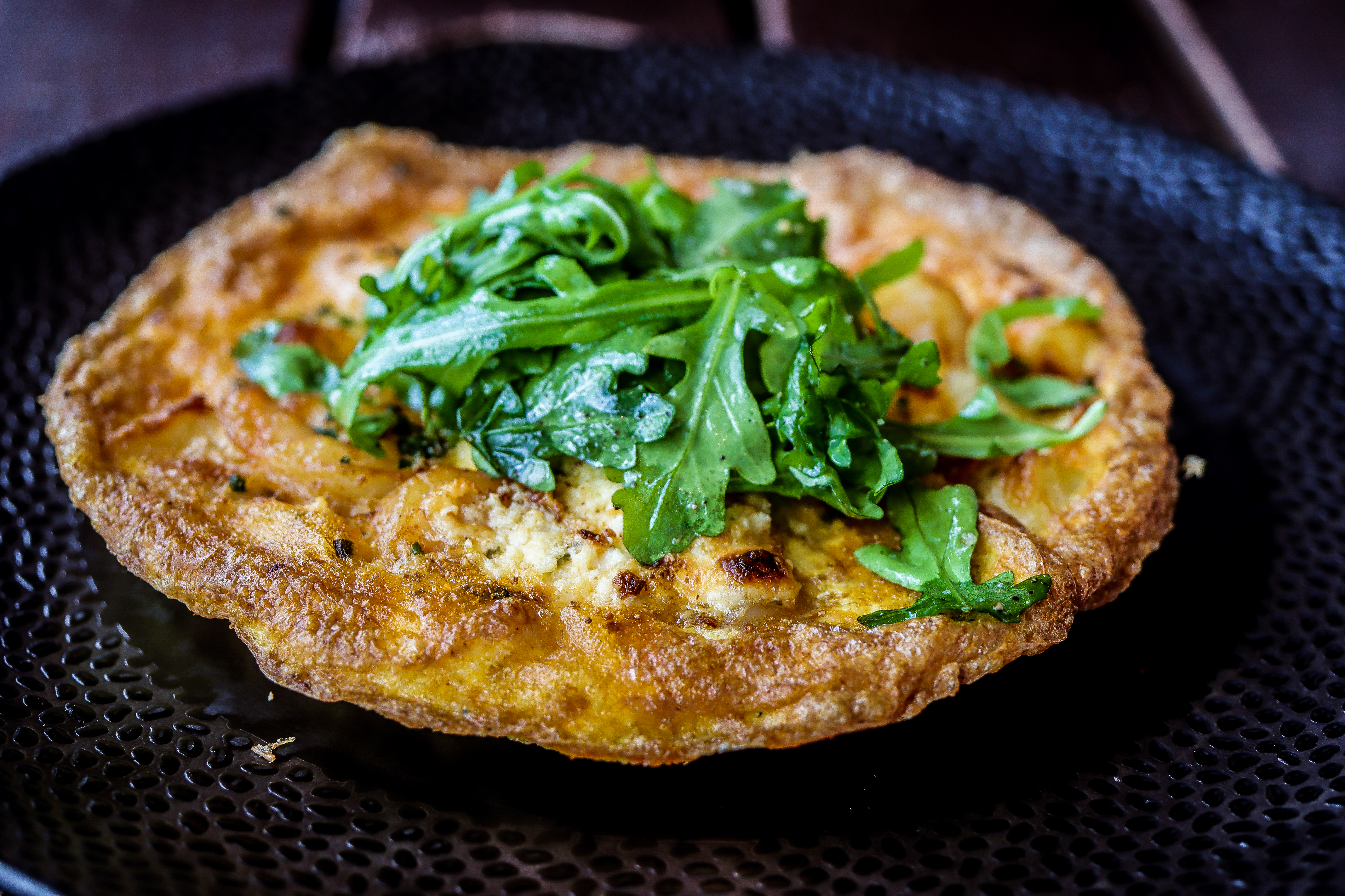 gulf shrimp, Yukon potatoes, Boursin cheese, chives, served with arugula salad