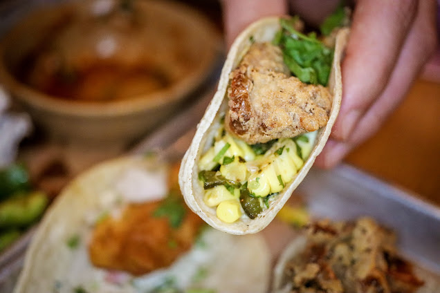 shredded duck + oaxaca + cotija cheeses in a crispy corn tortilla w/ birria-style duck broth