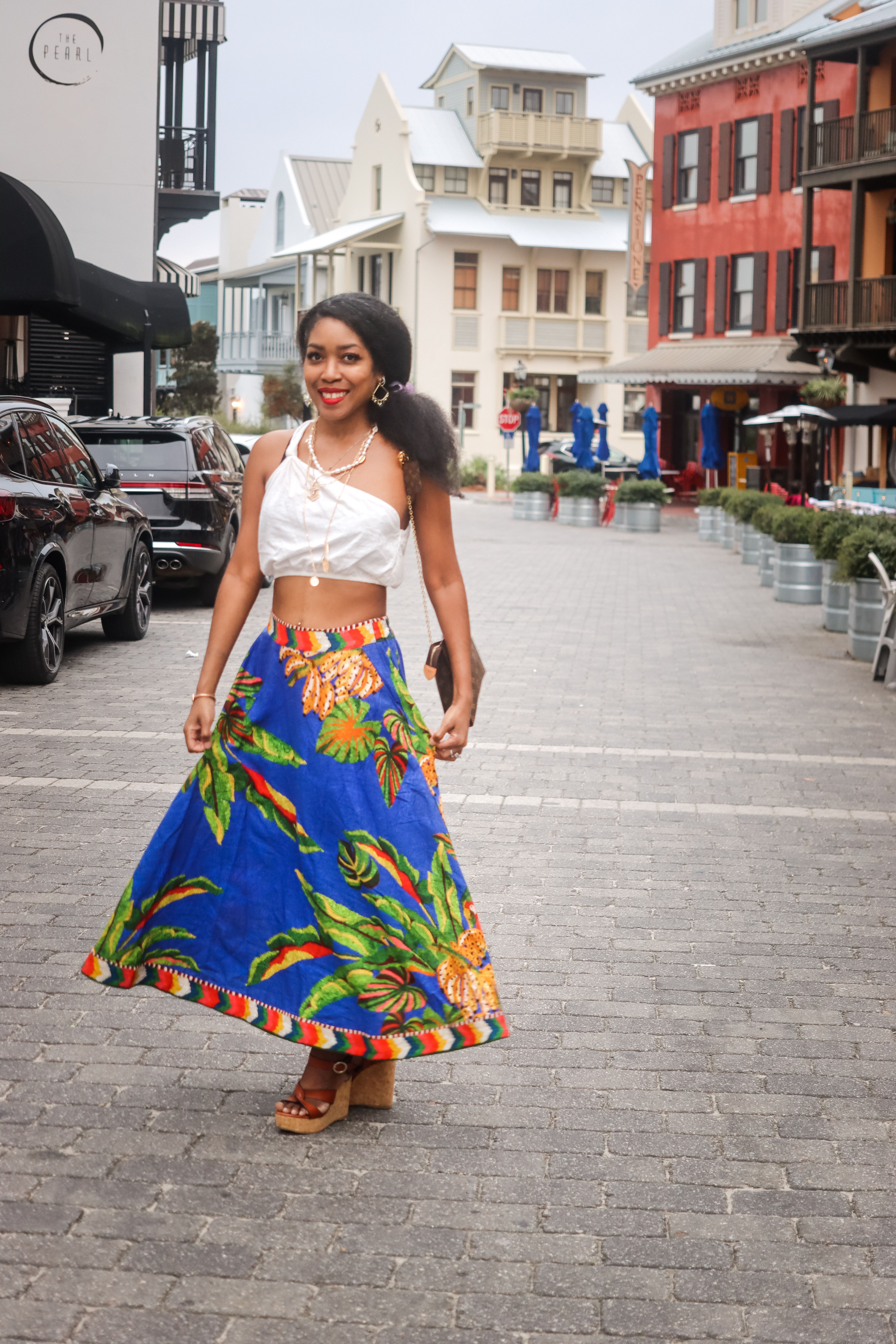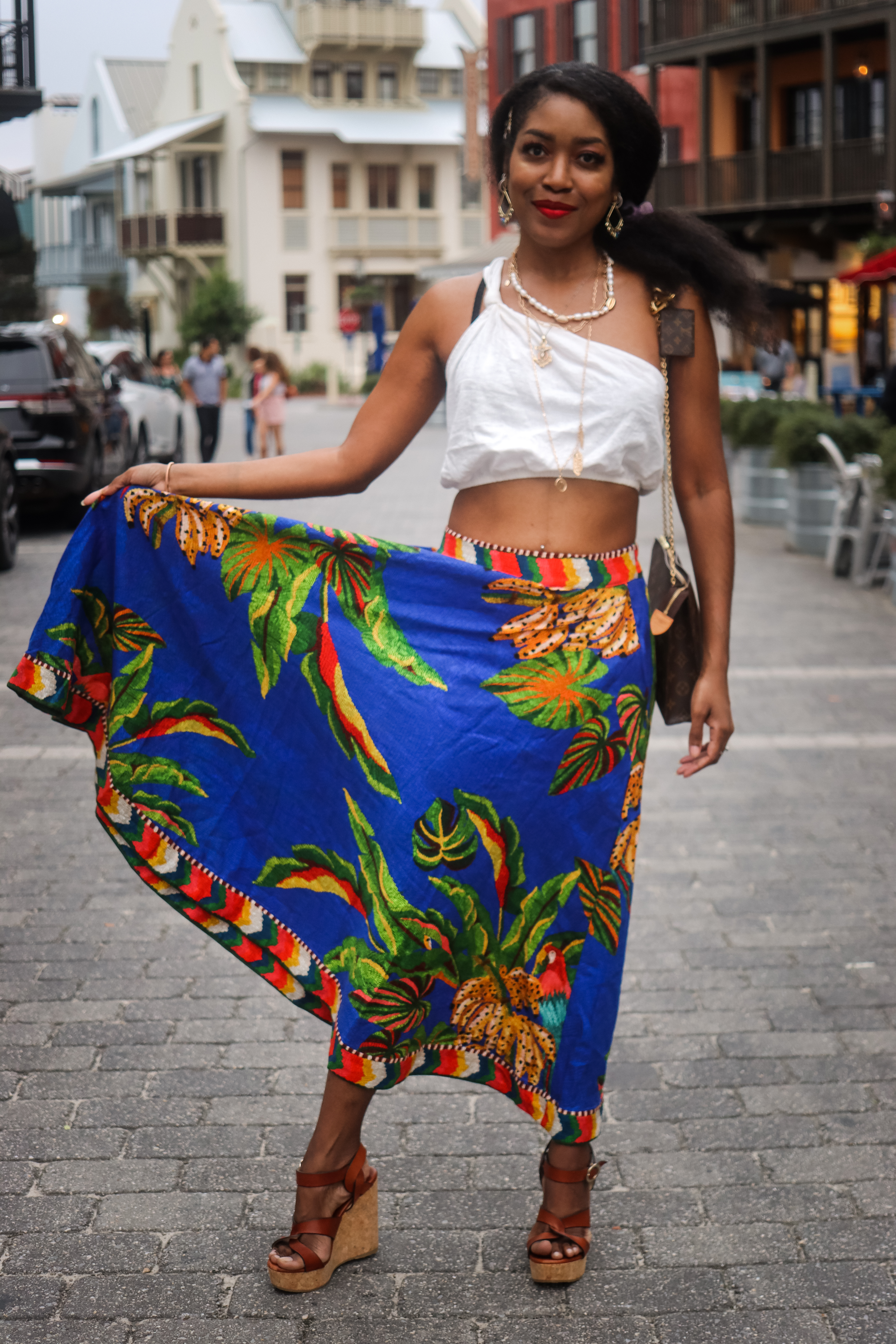 Blue Tropical Scarf Midi Skirt: Farm Rio