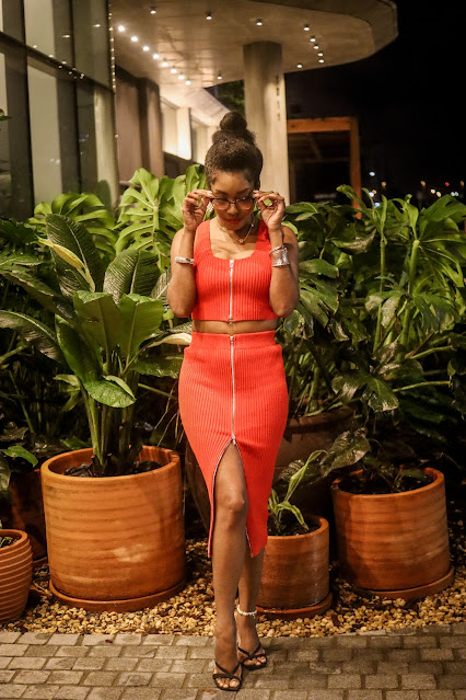 Tonight, I am wearing a look that I am quite fond of. It was raining profusely and even though it is Florida, when it rains the temperature drops to about 70 or lower most times if it is not humid. For me, as a native Floridian that usually means I am cold so you will often find me wearing sweaters during all times of the year despite the fact that it may be Summer or Spring or just below 70 degrees which for many, it isn't cold at all. I am also anemic so you know there is that and I usually am cold when others are not. Anyhow, I was going to wear a different look from my closet that did not get much wear, but tonight I wore this Alexander Wang set.